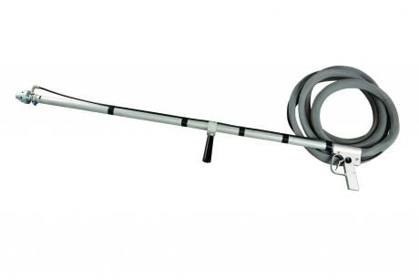 La longue lance permet de décaper en hauteur et de décaper les sols. La lance est livrée avec un tuyau de projection de 10 mètres (sans armure). L'armure peut être commandée séparément ou au mètre. Si vous souhaitez utiliser la lance pour le sablage humide, il vous suffit de commander le tuyau d'eau au mètre. Tenez compte de la longueur de votre tuyau, avec un mètre pour la lance et un mètre de tuyau de réserve. Fixez le tuyau d'eau à l'extérieur de la lance à l'aide de Ty-raps ou de serre-câbles.