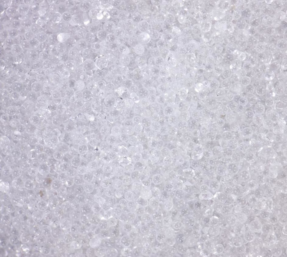 | Propriétés | Couleur : blanc Forme : billes de verre rondes Dureté : 6,0 Mohs Poids spécifique : environ 2,5 g/cm³ Densité apparente : environ 1,5 - 1,6 g/cm³ |